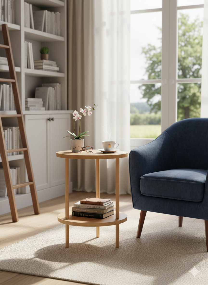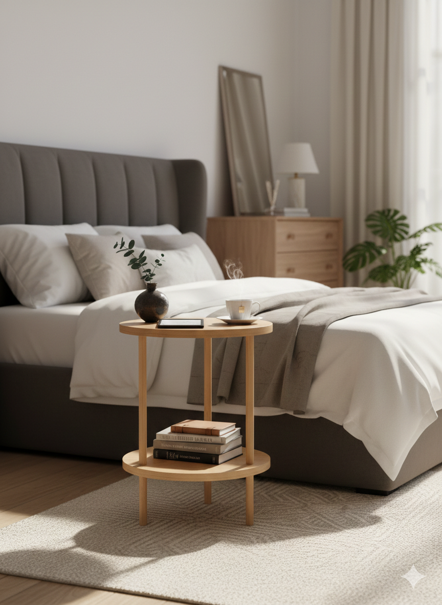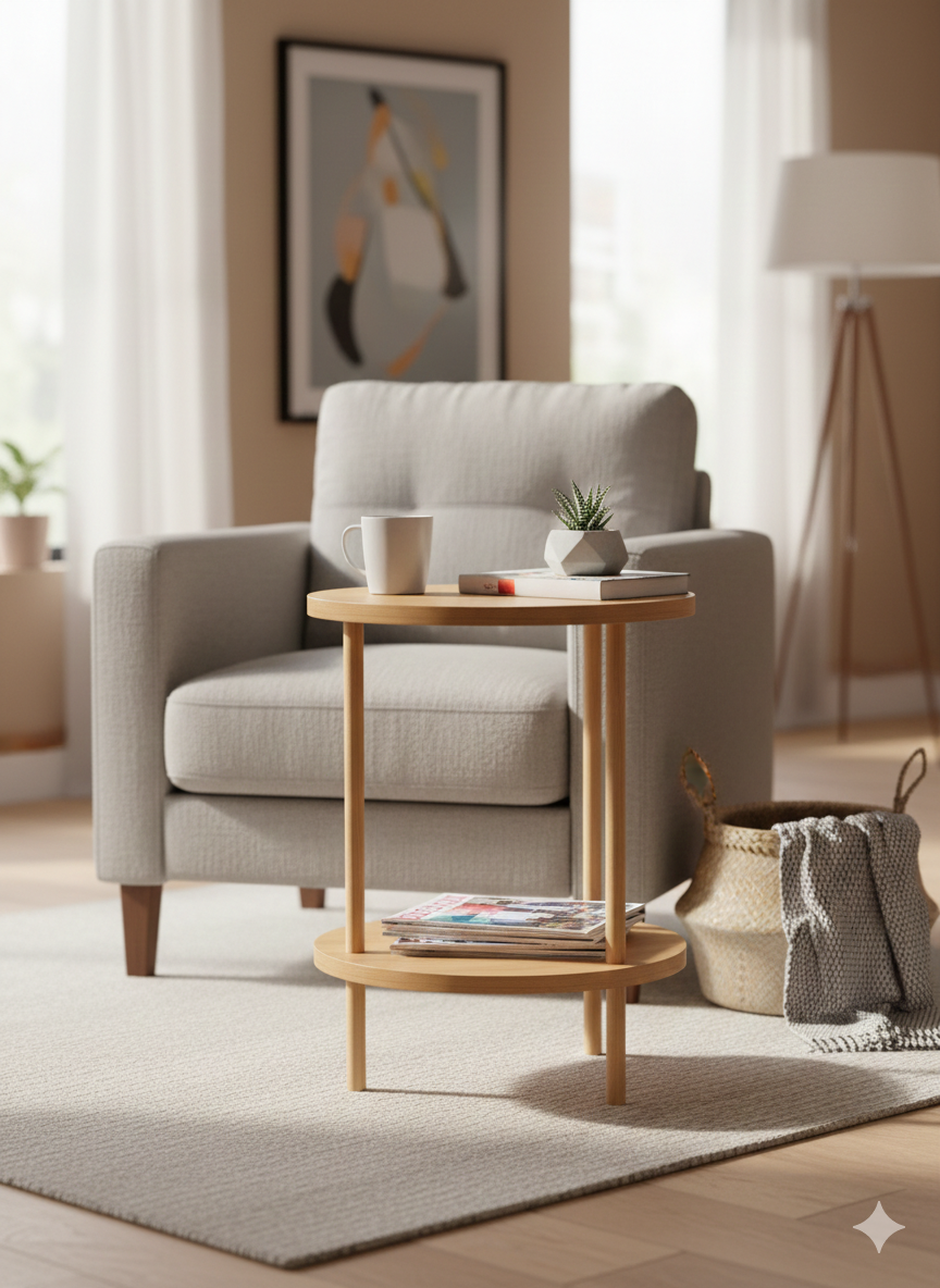 Doble Nivel de Almacenamiento: Cuenta con dos superficies redondas, proporcionando amplios espacios para objetos decorativos, libros, revistas, bebidas o dispositivos.