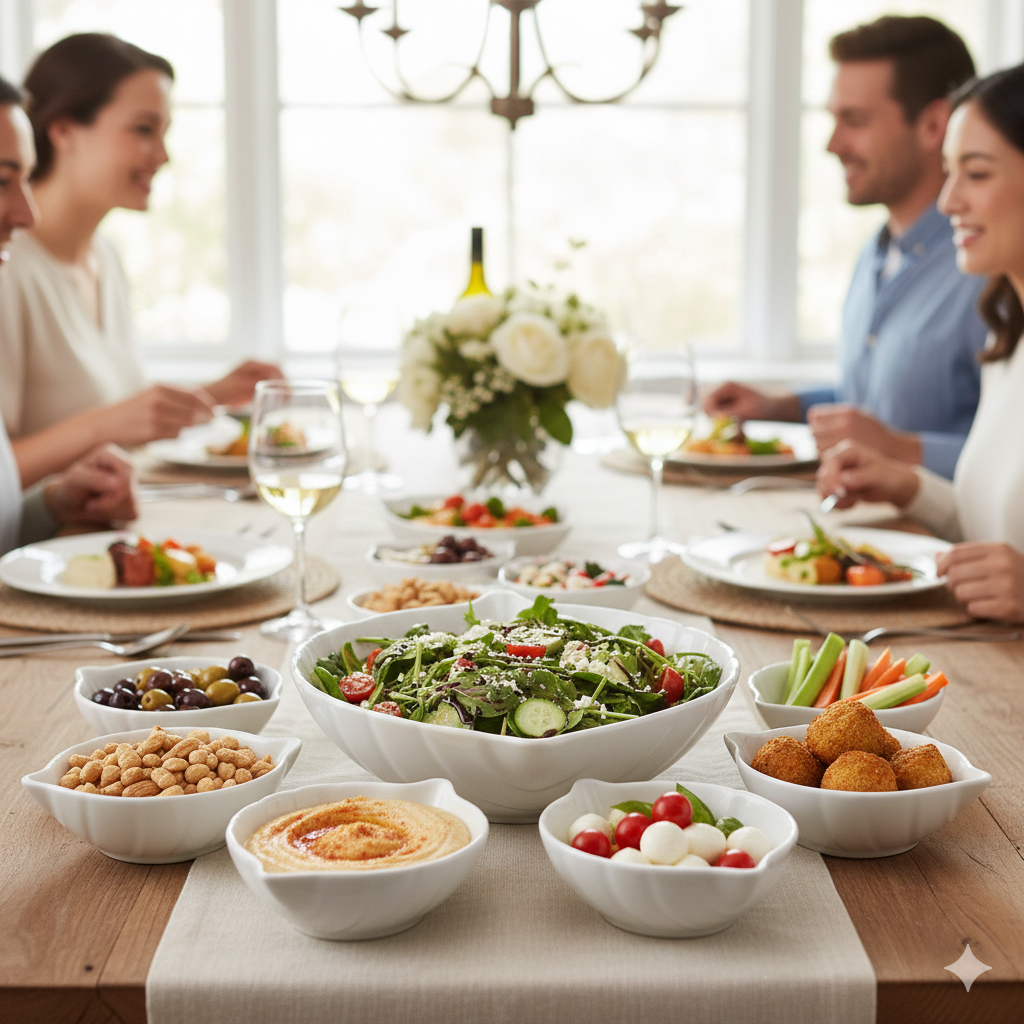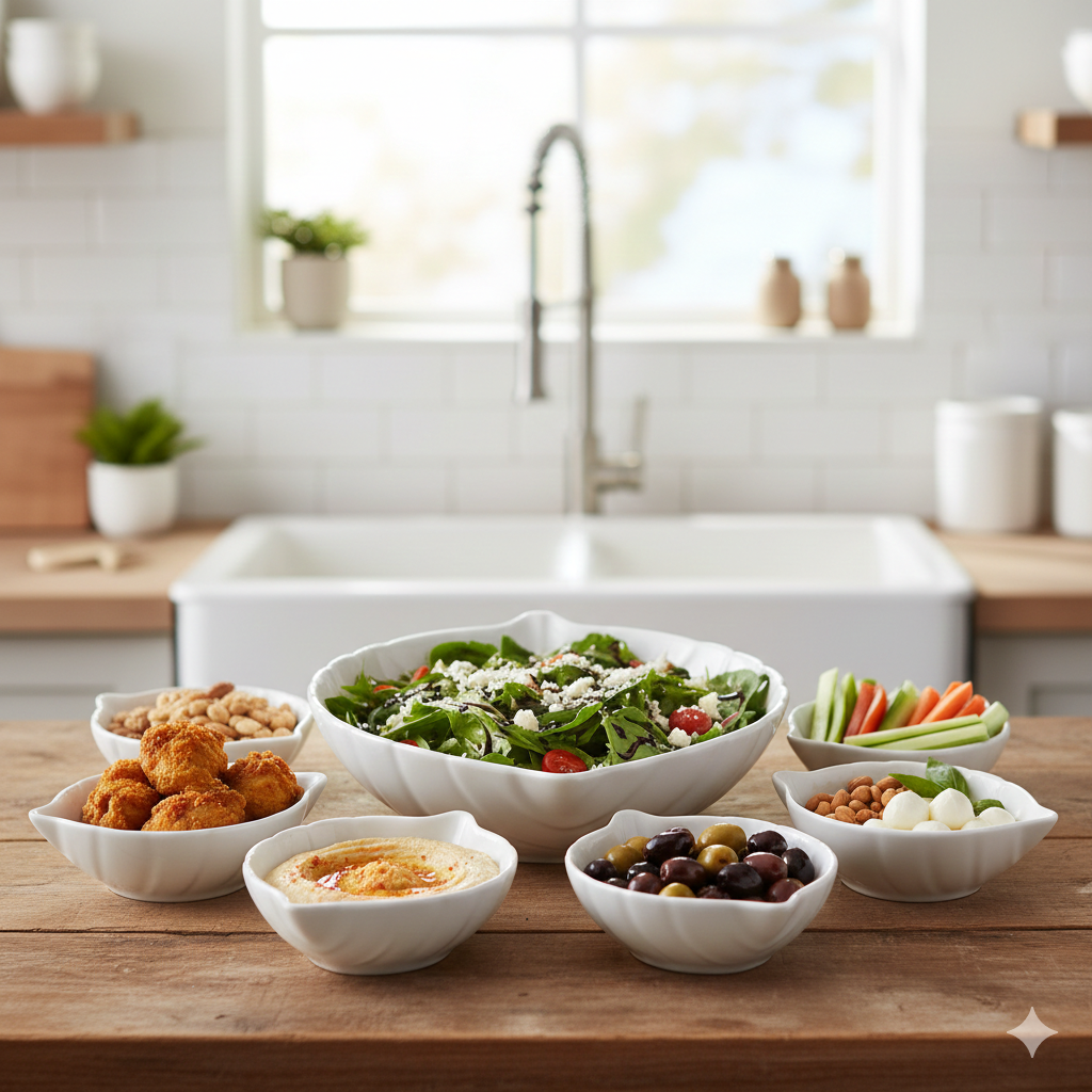 Es el set ideal para servir ensaladas, entradas, pasabocas o postres, permitiendo una distribución armoniosa en la mesa gracias a sus diferentes tamaños.