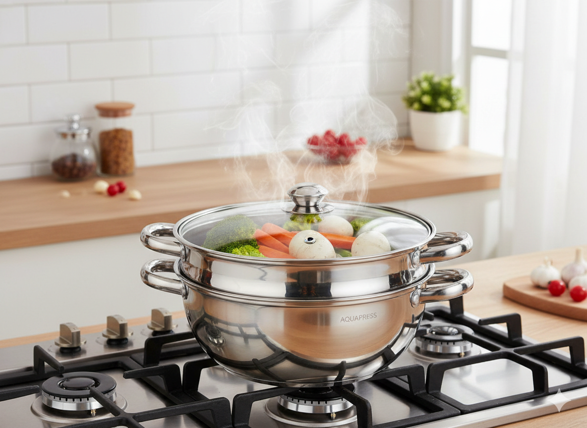 Set de Olla Multiusos y Vaporera de Acero Inoxidable Capacidad 4 Litros