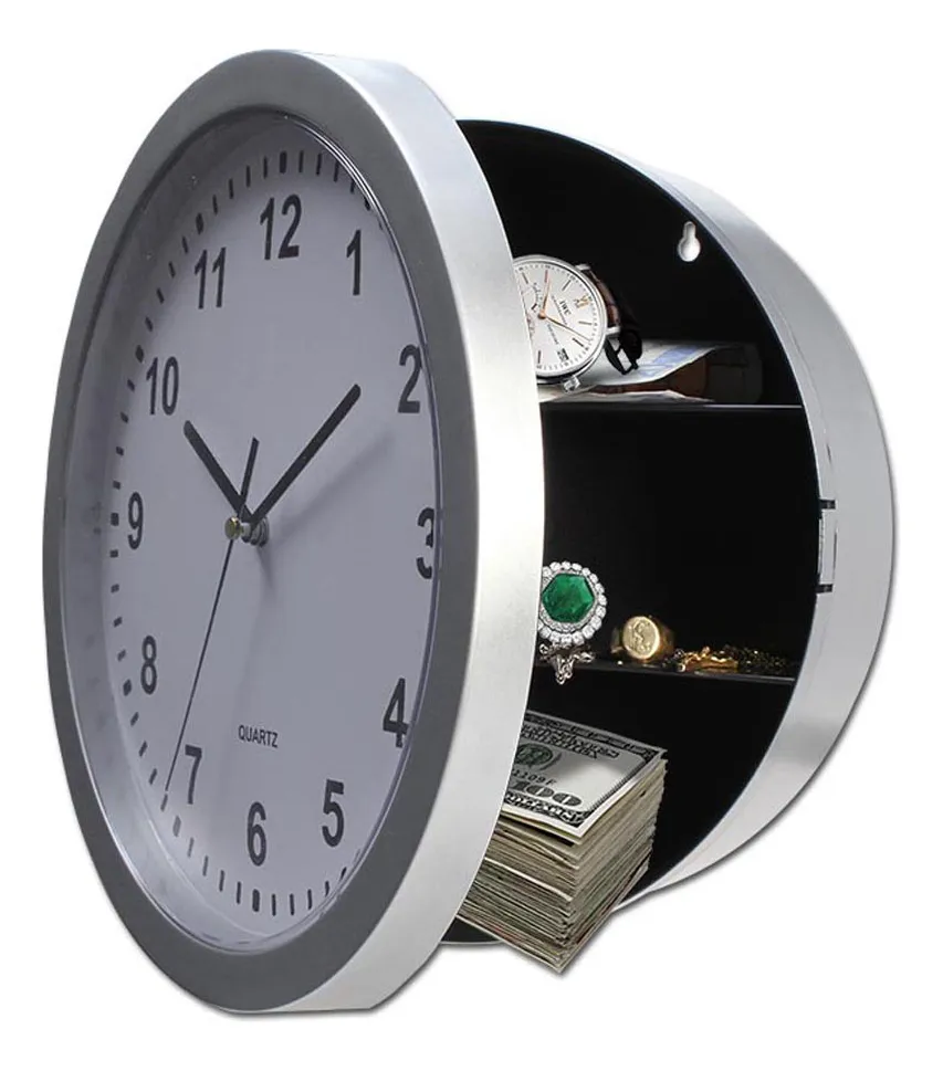 Mantenga sus pertenencias más valiosas protegidas y fuera del alcance de miradas curiosas con el Reloj Secret Safe. Este ingenioso dispositivo combina la utilidad de un reloj de pared convencional con la seguridad de una caja fuerte oculta. Su diseño de apertura frontal revela un espacio privado dividido en tres niveles, ideal para el resguardo discreto de objetos pequeños pero valiosos.
